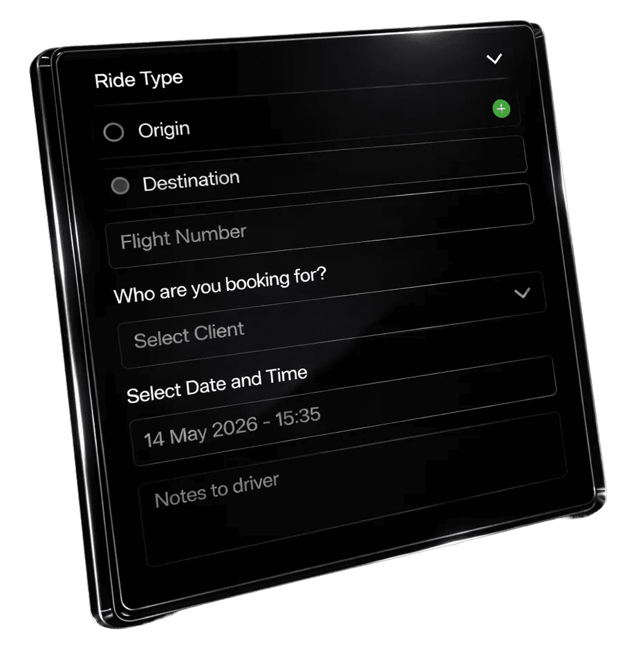 Arrange airport transfers, corporate journeys, events or VIP travel on behalf of others with full visibility and control.