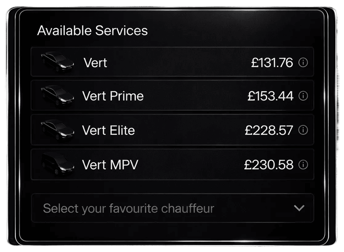 Select the appropriate vehicle tier for each journey, from executive electric to premium multi-passenger services.
